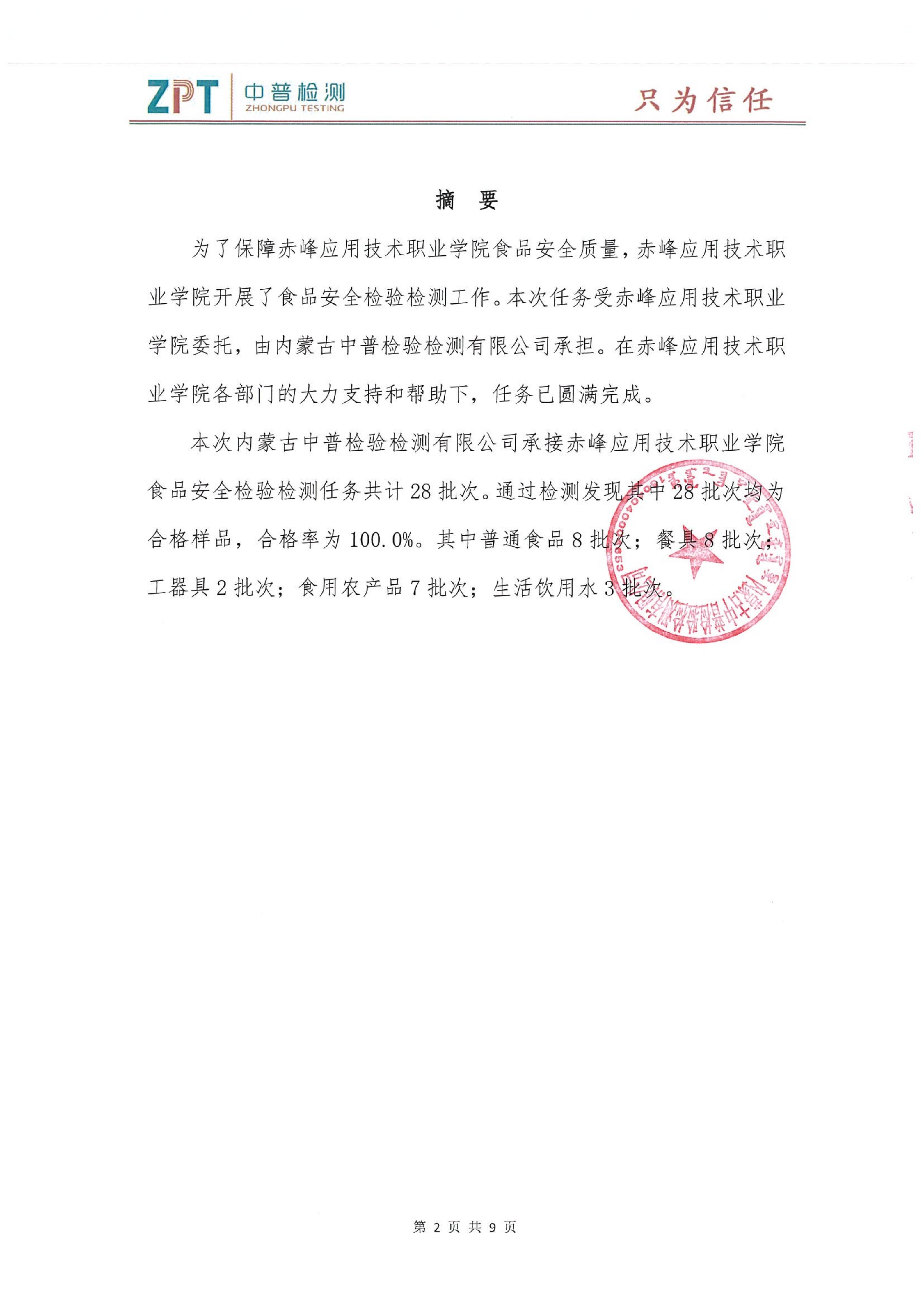 为切实保障全院师生饮食安全与健康,我院后勤基地处委托第三方专业检测机构,对食堂内饮用水、餐饮具、食用油、主食及各类副食等关键环节进行了全面检验检测。本次检测结果均符合国家食品安全相关标准,现将具体报告予以公示,接受全院师生监督。学院将持续严格把控食品安全关,为大家提供安心、放心的就餐环境。